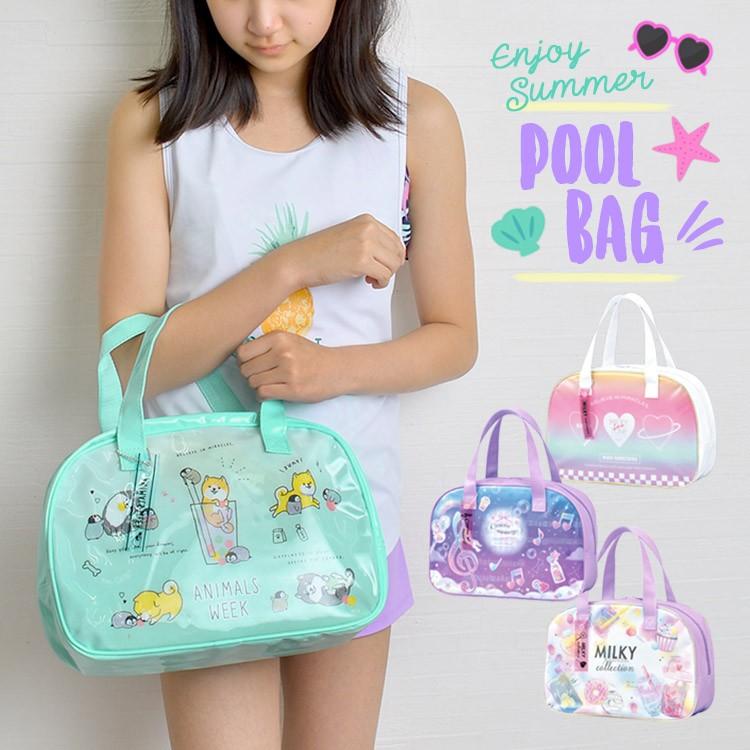 プールバッグ 女の子 小学生 おしゃれ クリアバッグ 通園 かわいい ボストン 透明 透けにくい キッズ スイミング プール